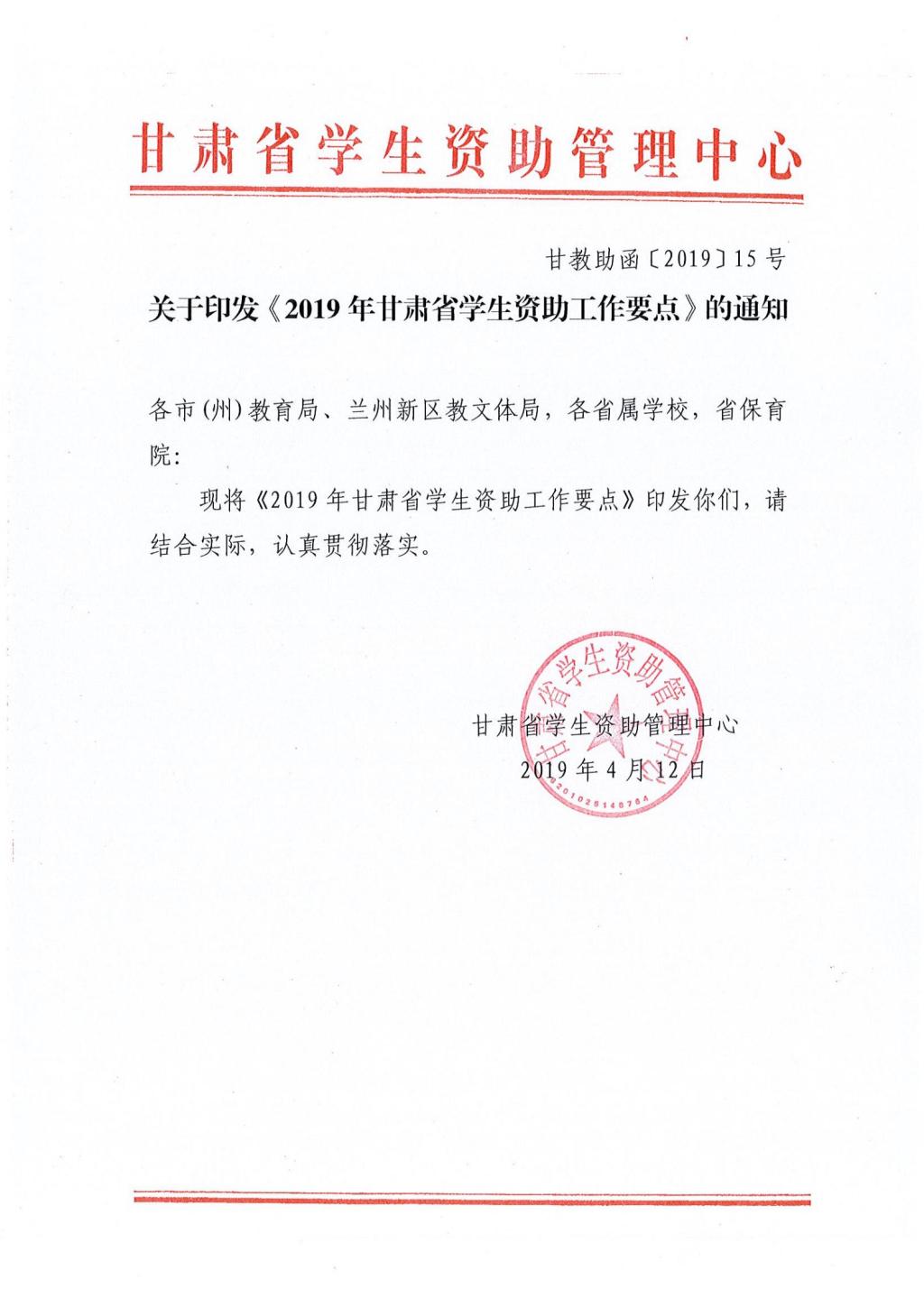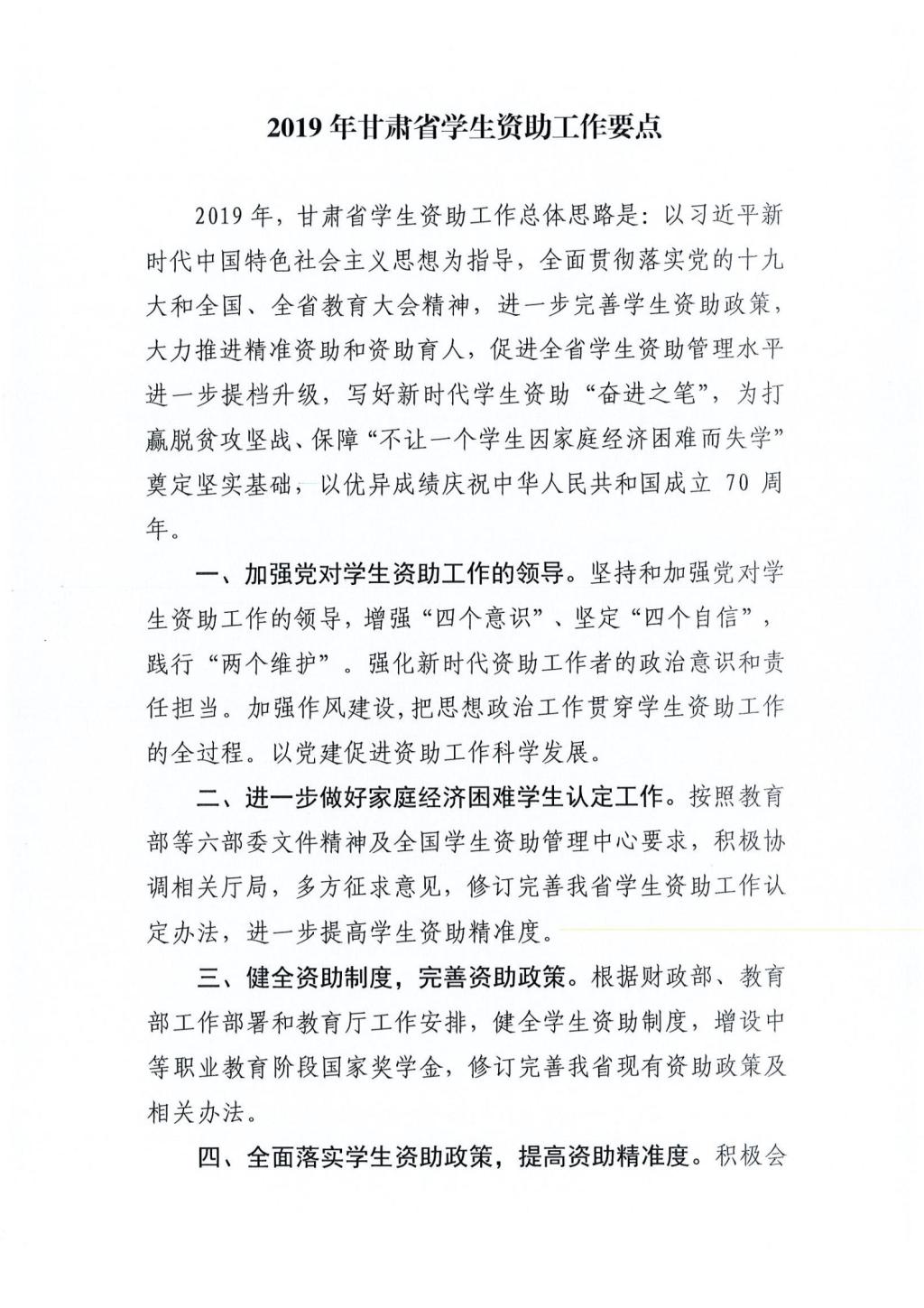 2019年甘肃省员工资助工作要点
