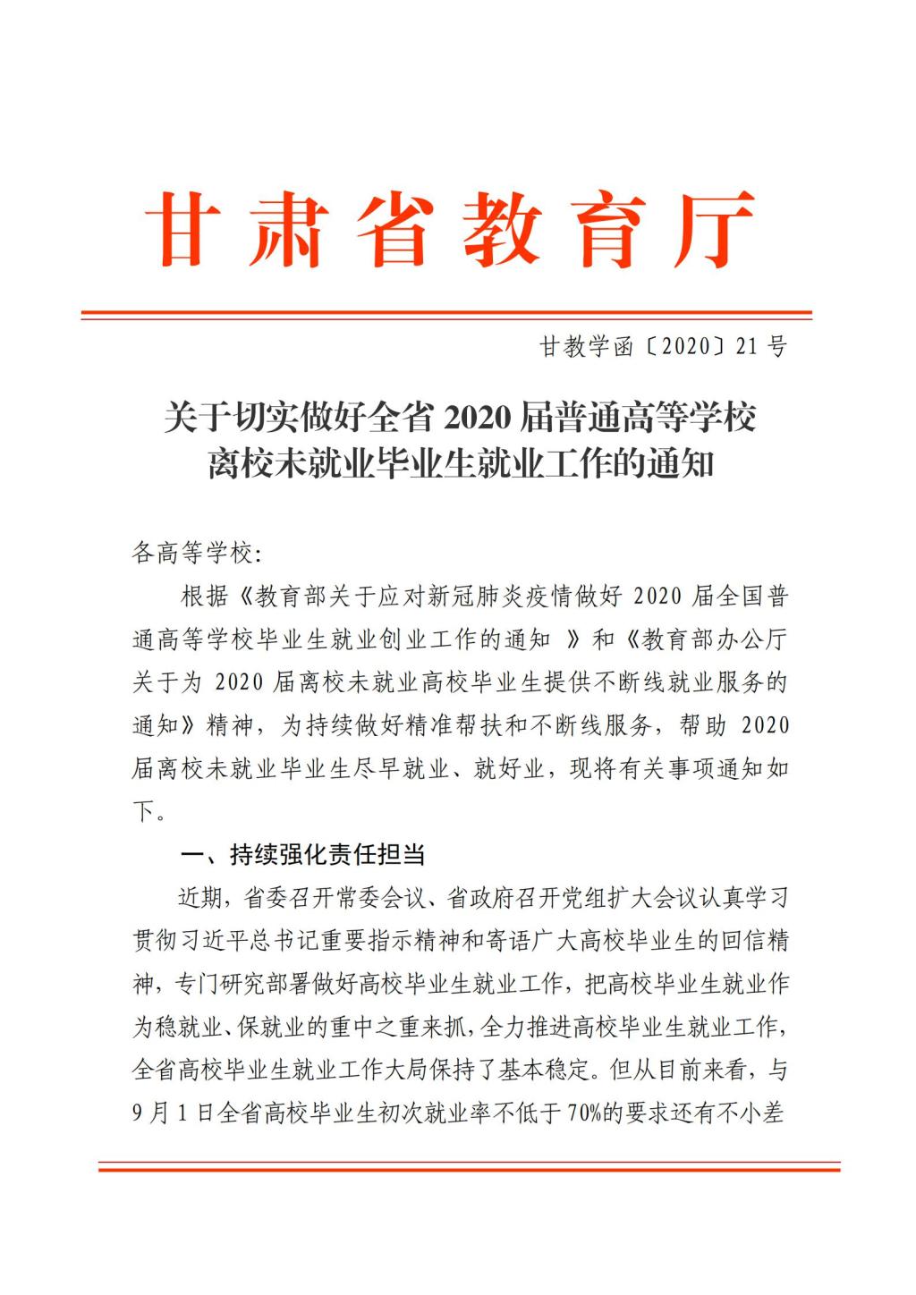 关于切实做好全省2020届普通高等公司离校未就业毕业生就业工作的通知.PDF